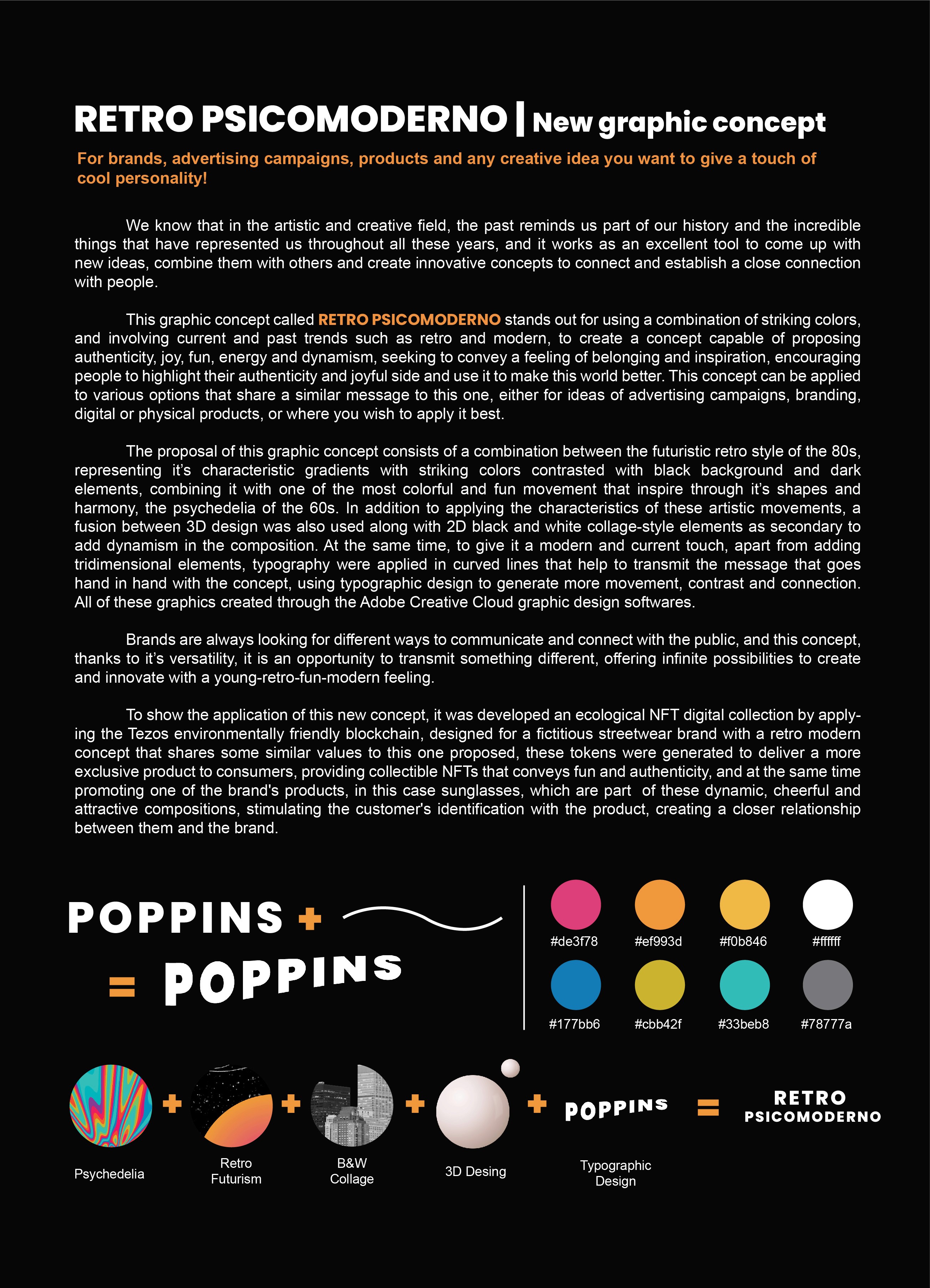Retro Psicomoderno is a creative and graphic concept that blends historical artistic movements to inspire people to be their most authentic version. As the Visual Designer, I crafted the brand's comprehensive visual and creative identity, establishing a strong and memorable presence.